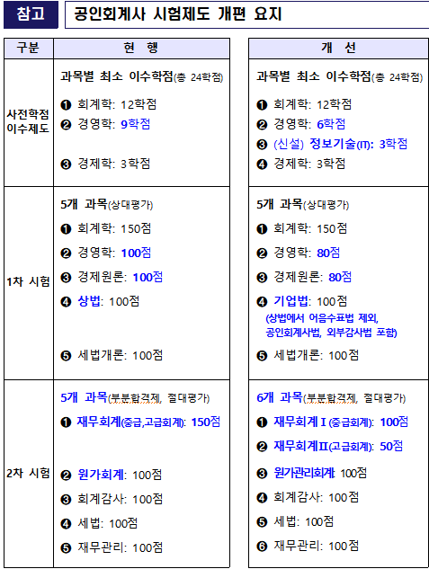 올해부터 공인회계사 시험을 준비하는 수험생분들은 개편안을 잘 확인하고 대비하셔야 될 것 같습니다.