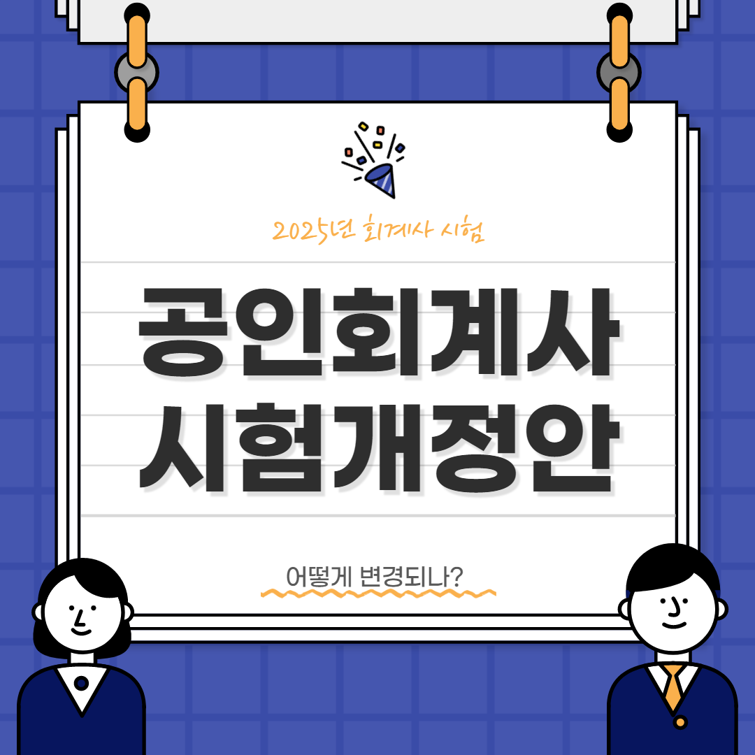 공인회계사 시험이 쉬운 시험은 아니니 적어도 3년은 준비를 해야 하는데 2022년부터 준비한다고 하면 2025년이 멀지 않았으니까요. 물론 바로 붙는 것이 최선이겠지만 항상 플랜 B는 준비해놓아야 하니까요. 그럼 지금부터 주요 변경내용들 알아보겠습니다.