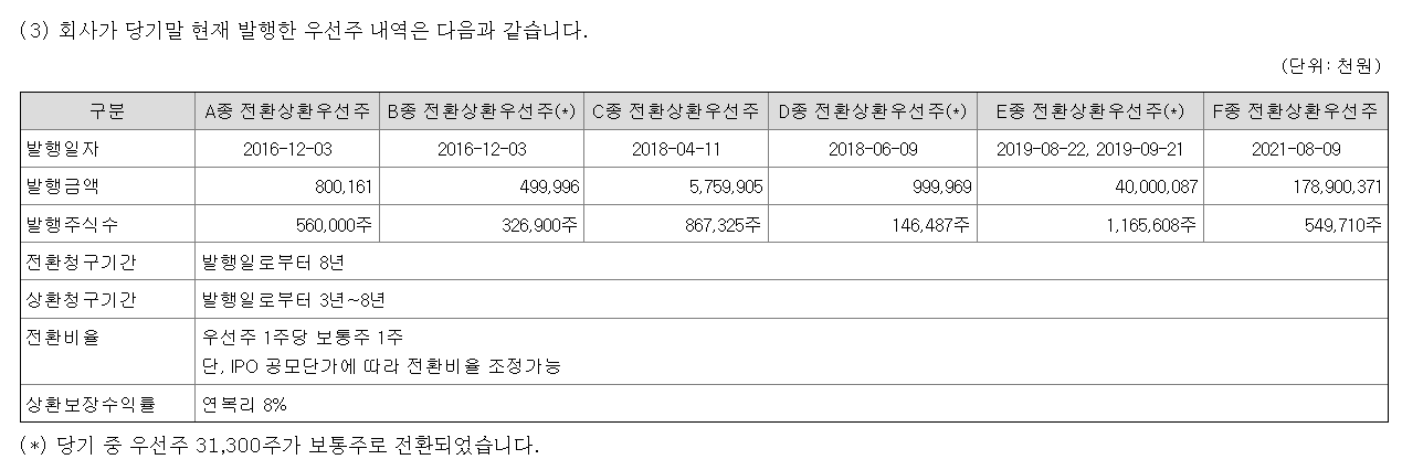 스톡옵션이란 불리는 주식선택권 행사가 여러 차례 있었고, 유상증자로 상환전우선주 549,710주가 발행된 걸 알 수 있습니다.