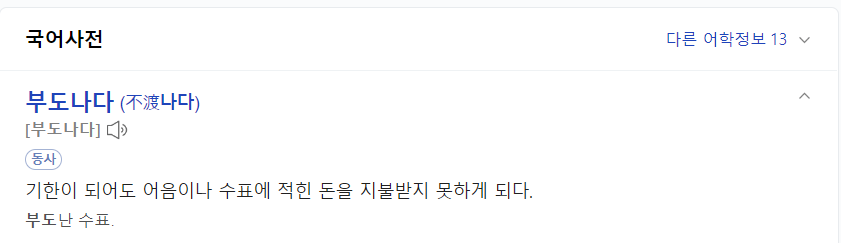 네이버 사전에서 "부도나다"를 검색하면 이렇게 나옵니다.
