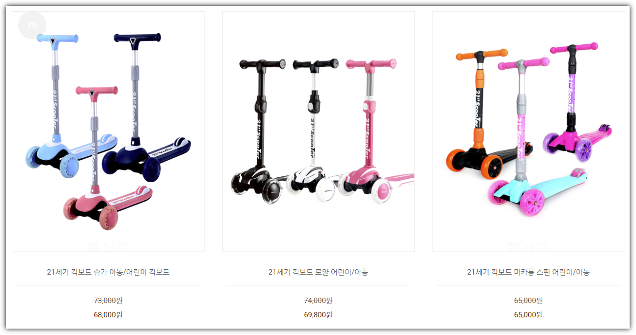 반면 경쟁제품(?)인 21세기 킥보드의 경우에는 미니 기준으로 6만 5000원입니다. 절반 가격 이상이 차이가 납니다.