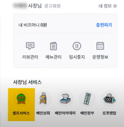 2단계 : 사장님서비스 메뉴를 클릭합니다.