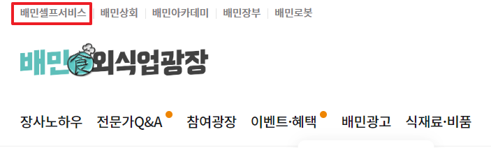 위에서 먼저 보이드린 방법 말고 아래아 같이 배민 외식업광장 위에 있는 배민셀프서비스 메뉴로 접속하셔도 됩니다.