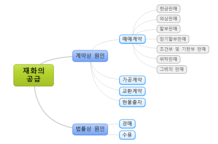 재화의 공급은 계약상 또는 법률상의 모든 원인에 따라 재화를 인도하거나 양도하는 것입니다.