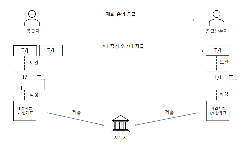 세금계산서(Tax Invoice, T/I)란 과세사업자가 재화·용역 공급시 부가가치세를 거래징수하고 그 거래사실과 내용을 증명하기 위하여 발급하는 세금영수증을 말합니다. 공급받는 자는 수취한 세금계산서에 의해서 거래징수 당한 매입세액을 매출세액에서 공제받을 수 있습니다. 따라서 아주 중요한 세무자료라고 할 수 있습니다.