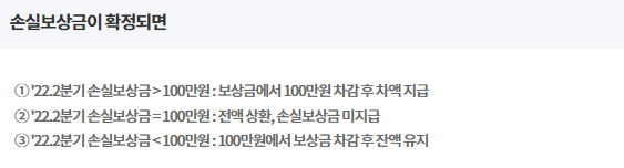 2) 원금차감 : '22.2분기 손실보상금 확정 시 선지급 원금(100만원)에서 차감