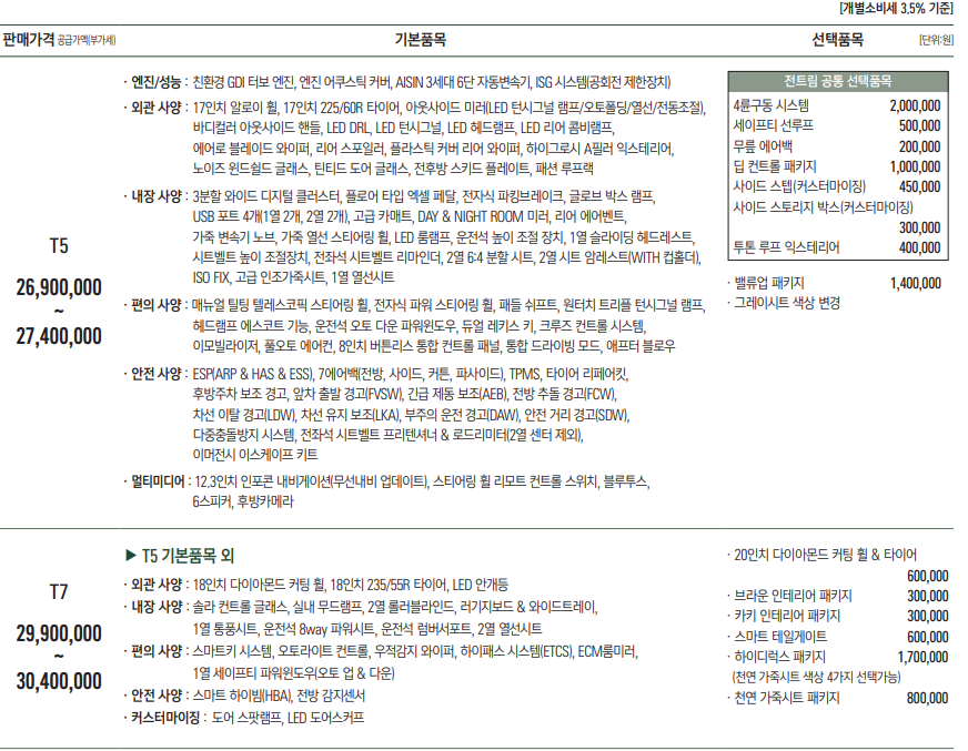 개인적으로는 땀이 많은 편이라 통풍시트 때문에라도 T7으로 가야 할 것 같습니다.
