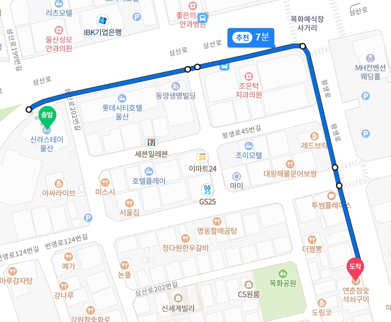 울산 신라스테이 -> 연춘참숯석쇠구이 가는길