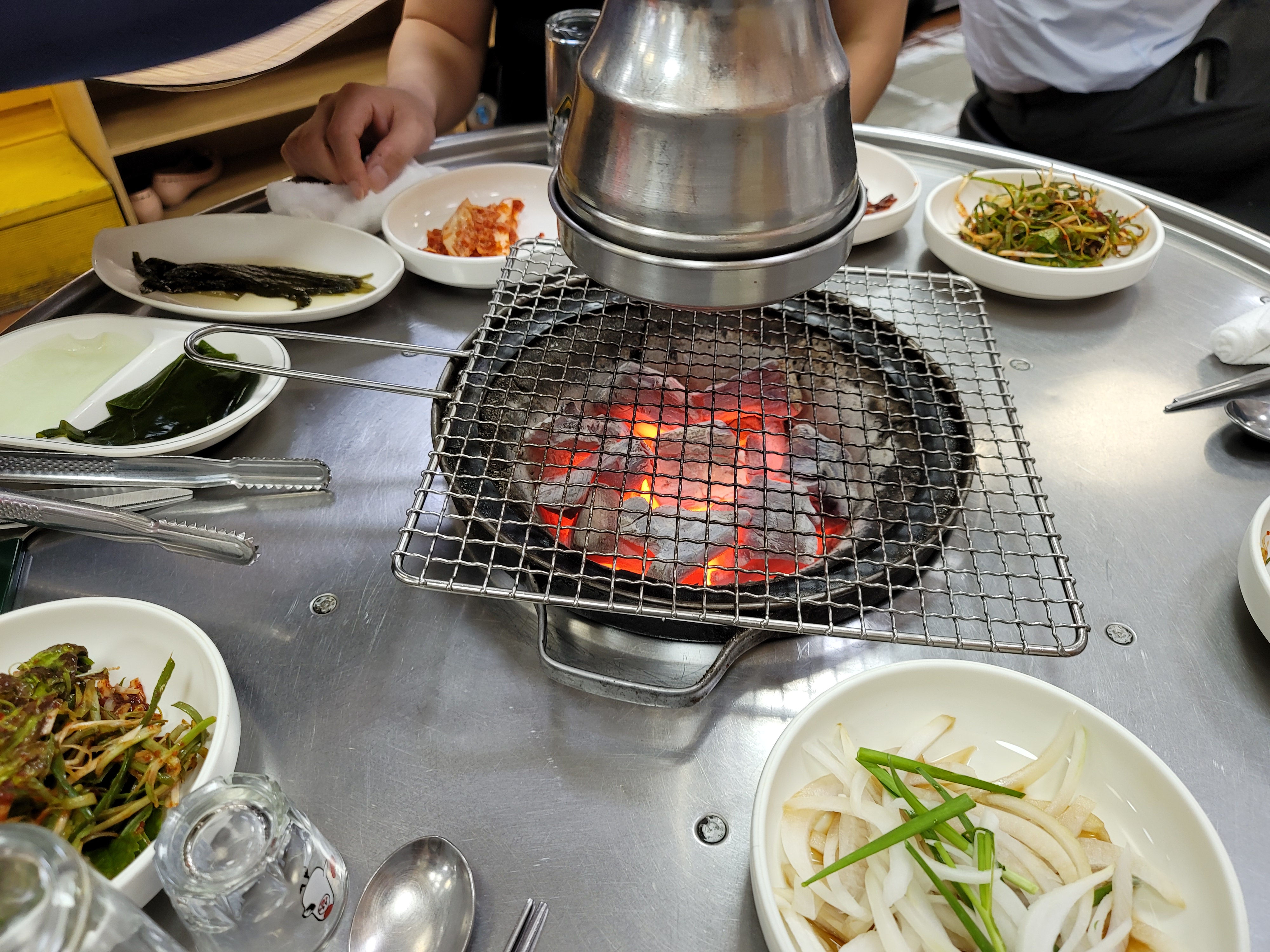 곧 숯불이 들어왔다. 한 눈에 봐도 참숯이다. 숯만 들어왔는데 침이 꼴깍 넘어갔다.