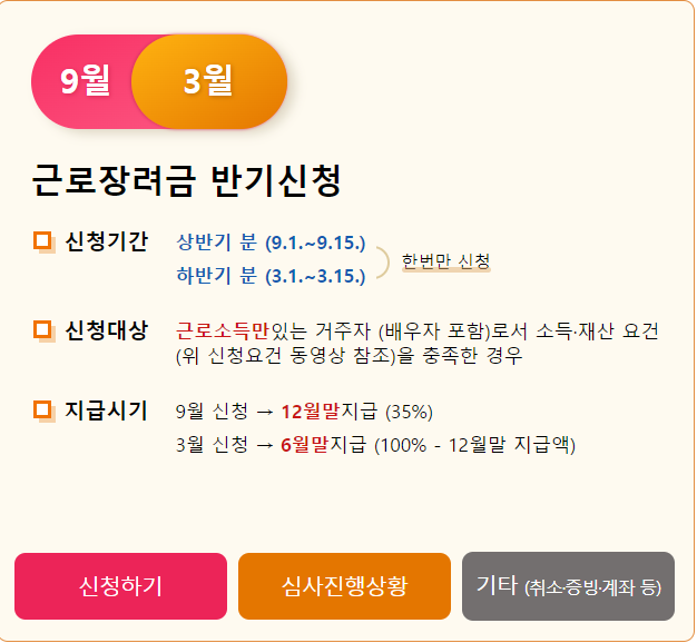 근로장려금 반기신청하시려면 눌러주세요.