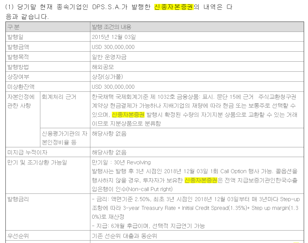 신종자본증권인 영구채의 만기는 강의에서 들었던데로 30년입니다. 그외 다른 옵션과 관련된 내용이 많은데 이러한 사항에 대해서도 향후 케이스스터디를 통해 좀 더 정확히 이해할 수 있었으면 좋겠다는 생각이 들었습니다.
