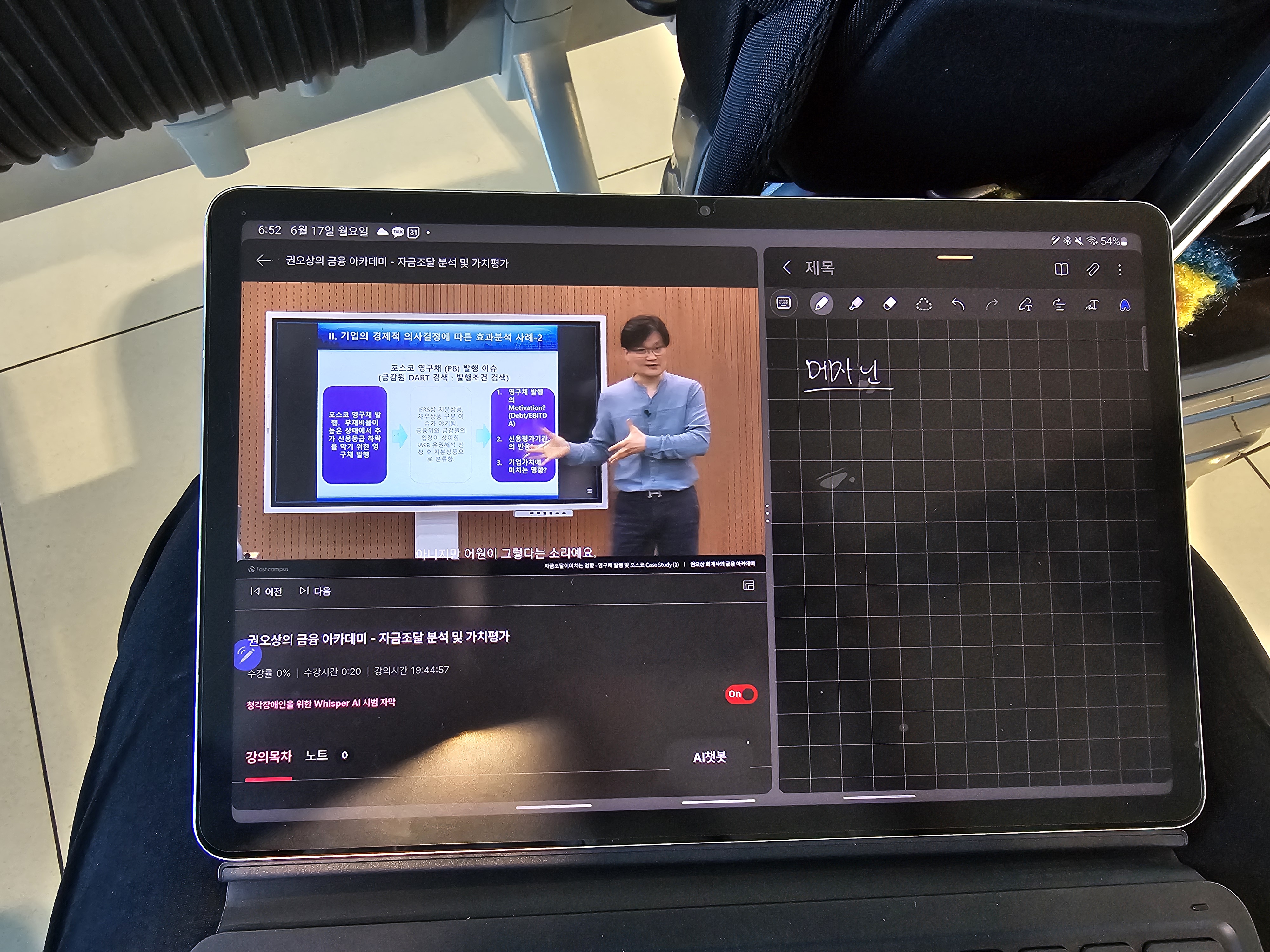 이전 강의 내용을 설명하시는 걸 들어보니 재무제표 분석과 관련된 강의 이후에 연속해서 자금 조달 내용을 강의하시는 것 같았습니다. 회계사로 업무를 하고 있어 저 같은 경우는 내용을 이해하는데 어려움이 없었습니다만, 처음부터 이 강의를 수강하신다면 조금 막힐 수도 있지 않을까 하는 생각이 들었습니다.