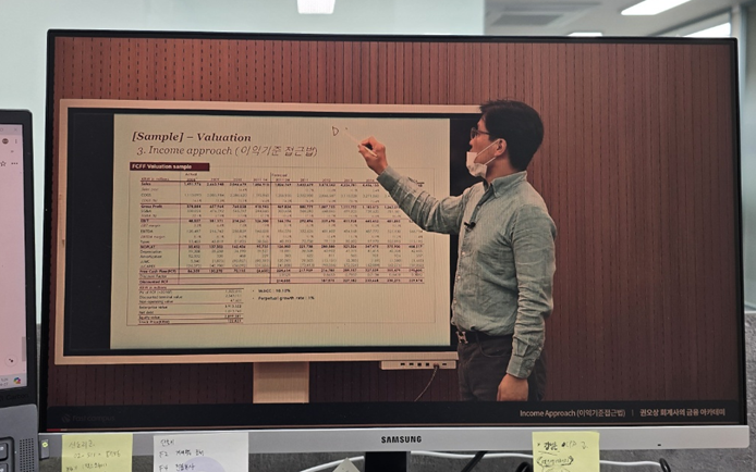 지난 시간에 이어서 Market Approach로 평가한 예시보고서를 통해 평가보고서의 대략적인 형태를 살펴보았습니다. 그리고 이어서는 이익기준접근법의 대표격이라 할 수 있는 DCF모형을 이용한 평가보고서 장표를 통해 DCF모형에 대해서 배웠어요. 전체적으로 실무를 하는 입장에서 기초적인 내용이라고 느껴지기는 했지만, 평가보고서를 처음 접하는 사람들(예를 들어 신입회계사라던가 평가업무를 처음 접하게 되는 회계직원들)에게는 아주 도움이 많이 되는 내용이겠다라는 생각이 들었습니다.