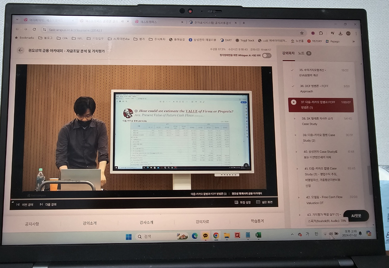 DCF 전체구조에 대한 내용에 대한 강의였습니다만, 개인적으로는 거기서 파생되는 사이드스토리들이 아주 흥미진진하고 유익했습니다.