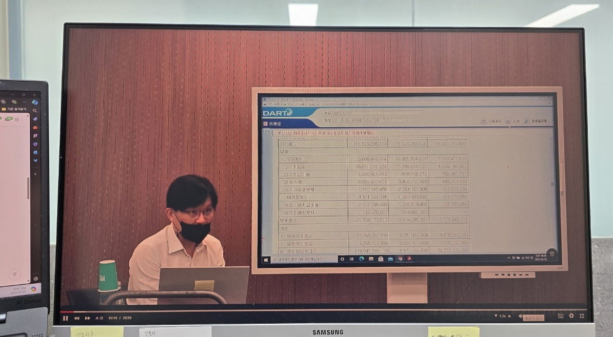 DCF 강의 중 제가 결제는 하지 않았지만, 재무제표분석과 관련된 강의에서 다루었던 내용과 관련되어 SK텔레콤 자사주 소각과 관련된 내용을 54분여간 강의하는 부분이 있었어요. 곁다리 느낌이긴 했지만, 기업지배구조에 대한 내용을 재밌게 들을 수 있어 좋았습니다. 이후 카카오합병 케이스로 돌아와서 보고서에 있는 내용 한 줄 한 줄에 대한 설명을 듣고, 이연법인세를 어떻게 평가에 반영할지에 대해서 알아보면서 오늘 강의는 끝이 났습니다.