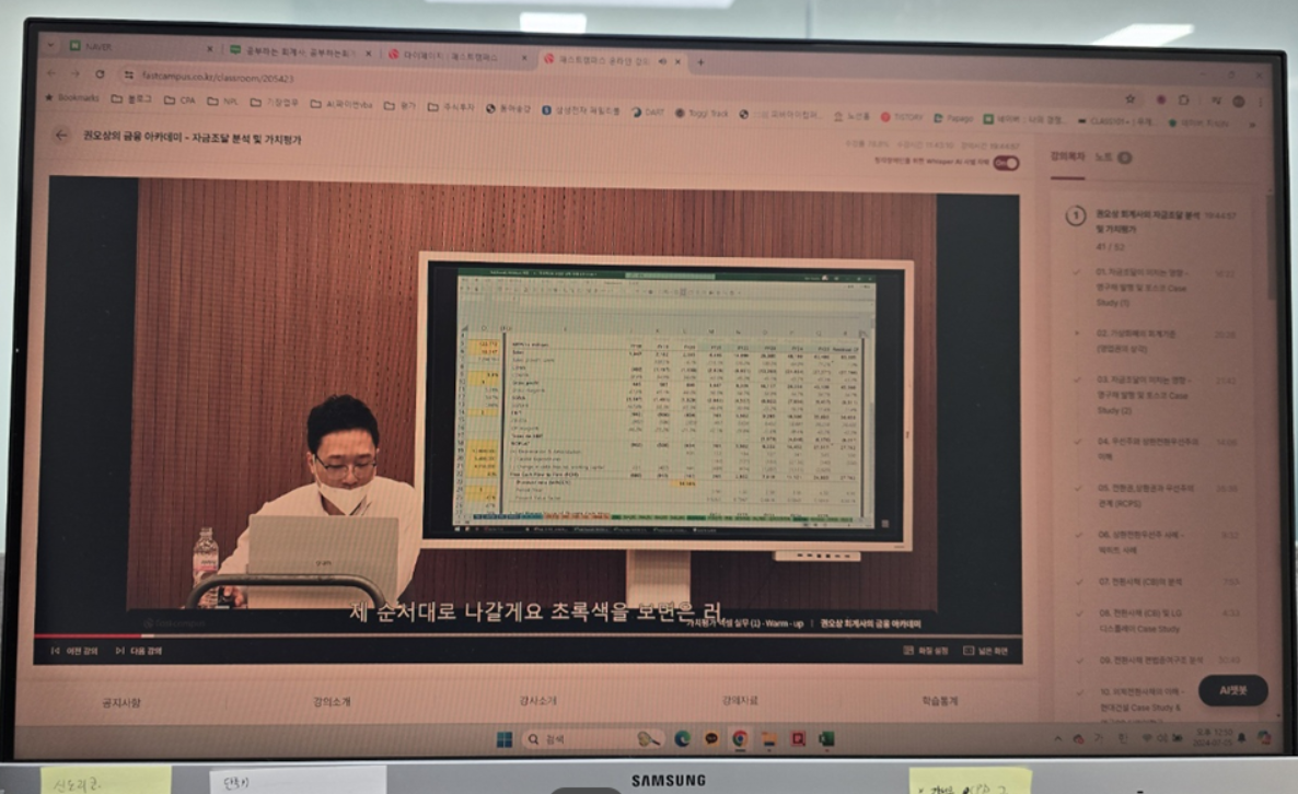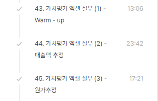 오늘은 가치평가엑셀실무와 관련한 영상강의 3개를 시청했습니다.