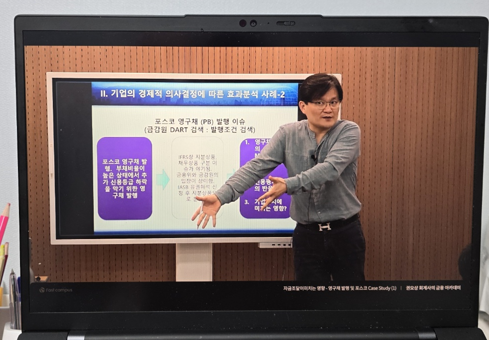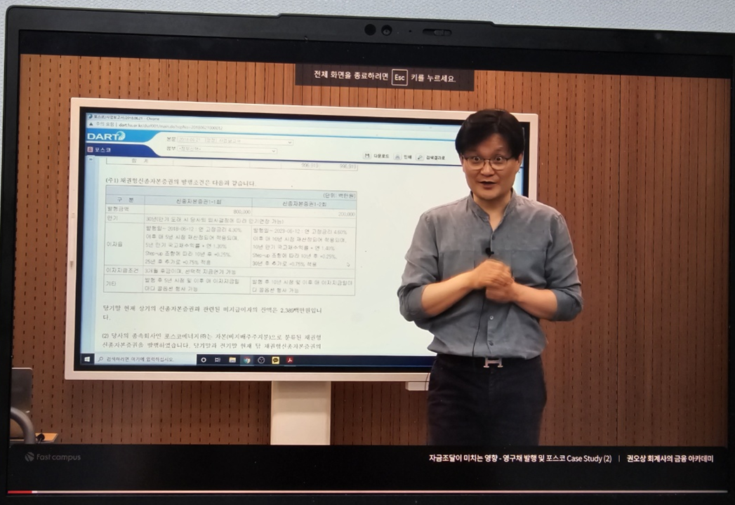 영구채를 자본으로 분류할지, 부채로 분류할지를 두고 금융위와 금감원 사이에 다툼이 있었다는 이야기부터, 그 때 당시 IASB까지 올라가서 자본으로 분류하는 것으로 결론이 났다는 이야기. 그리고 그 이후 논란의 여지를 없애기 위해 Put 옵션 조항을 빼고 영구채가 발행되었다는 이야기까지 아주 흥미진진하게 들었습니다.