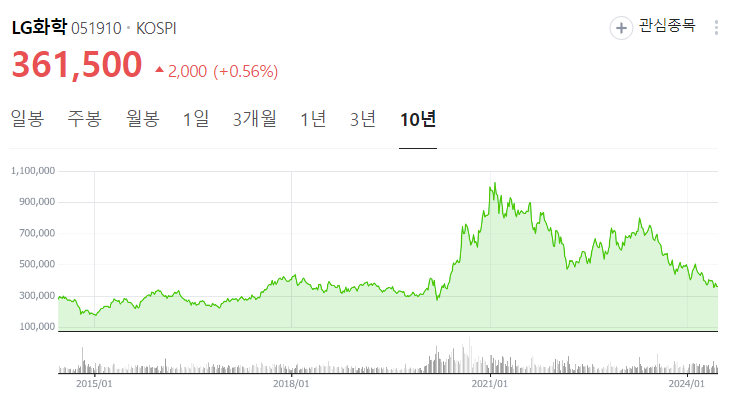 결과적으로 보면, 그들의 예상은 맞았습니다. LG화학의 주가 그래프를 보면 바로 알 수 있죠.