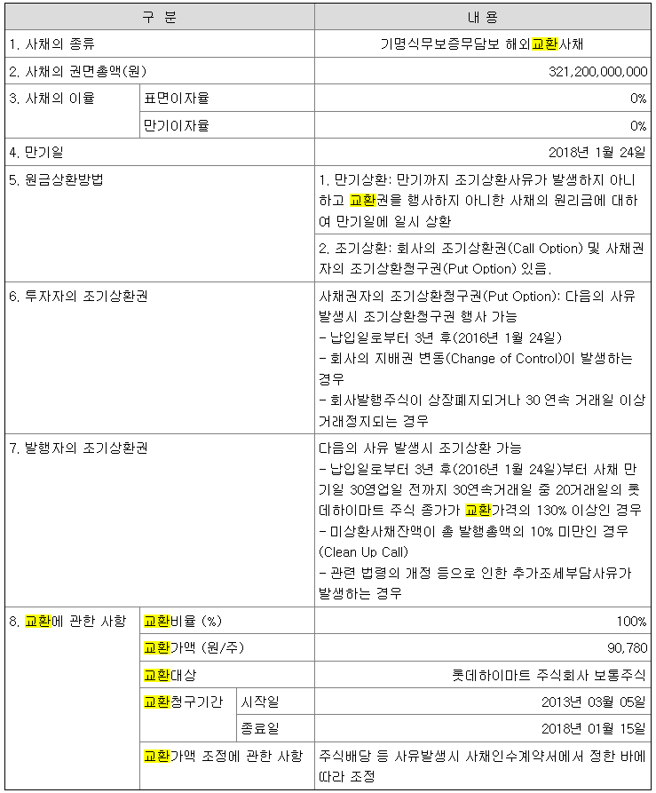 1) 롯데홈쇼핑의 교환사채 발행 케이스