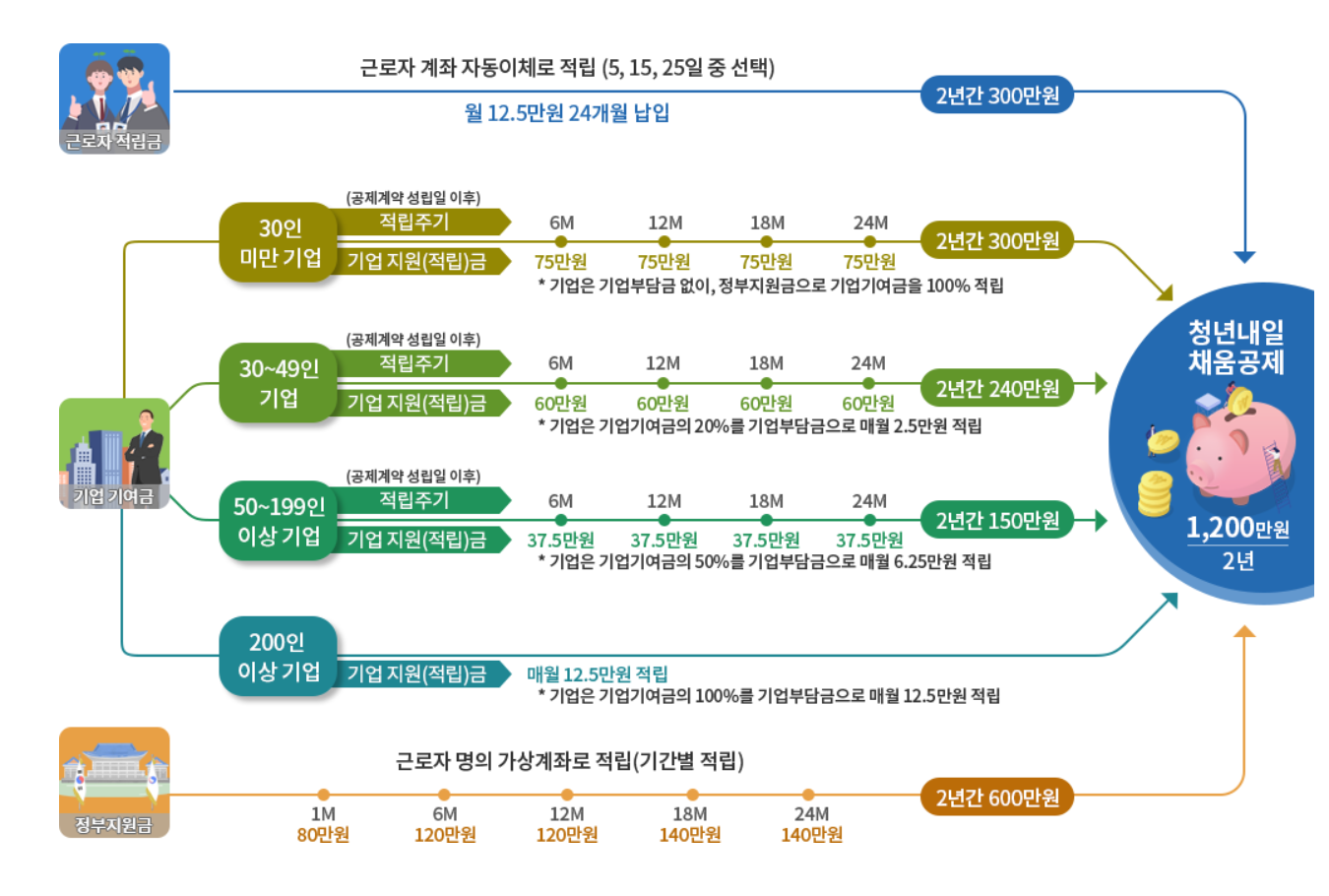 2년 동안 300만원, 월 12만 5천원만 적금하면 2년 후에 300만원에 더해서 900만원을 나라와 기업에서 주는 제도!