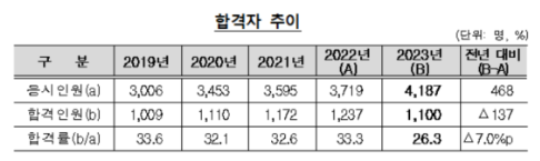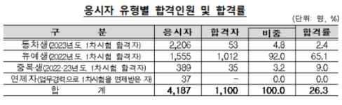 - 2차 시험 응시자 4,187명 중에서 1,100명이 최종합격함.