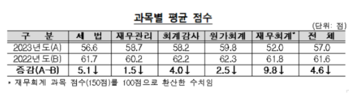 여러 과목들 중에서도 재무회계는 평균점수 자체가 거의 10점 가까이 내려갔습니다.