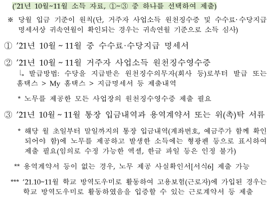 ㅇ ’21.10~11월에 특고·프리랜서로서 활동하여 50만원 이상의 소득이 있는 자 중