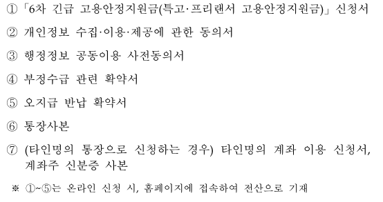 6차 긴급고용안정지원금 기수혜자 신청(서식) 다운로드