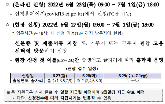 (온라인 신청) 2022년 6월 23일(목) 09:00 ~ 7월 1일(금) 18:00
