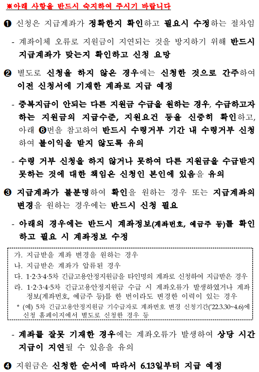 6.10~12 신청시 : 6.14부터 신청순서에 따라 지급