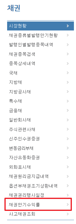3단계 : 화면 왼쪽 채권 메뉴에서 "채권만기수익률" 버튼을 클릭합니다.